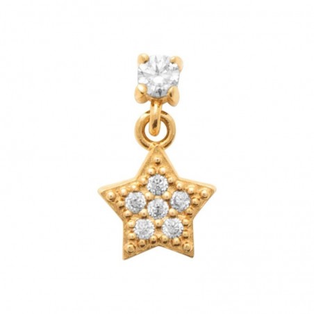 Naïla insuffle un éclat céleste à votre oreille. Ce piercing en plaqué or 18 carats est orné dune breloque étoile scintillante, pavée de fins oxydes de zirconium. Suspendue délicatement au creux du lobe ou du cartilage, elle capte la lumière à chaque mouvement.