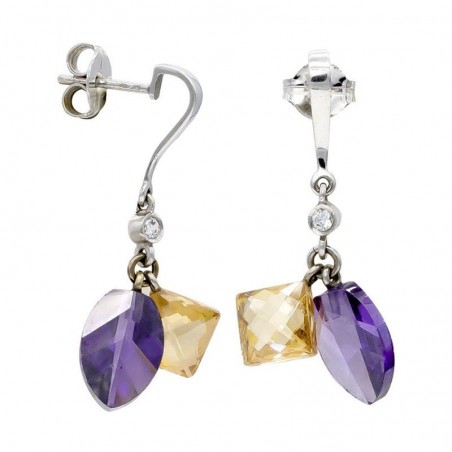 Suspendues avec grâce, elles suivent chaque mouvement en diffusant un éclat raffiné et coloré. L’améthyste, avec ses reflets violets profonds, apporte une touche mystérieuse et élégante, tandis que la topaze dorée diffuse une lumière solaire et pétillante.