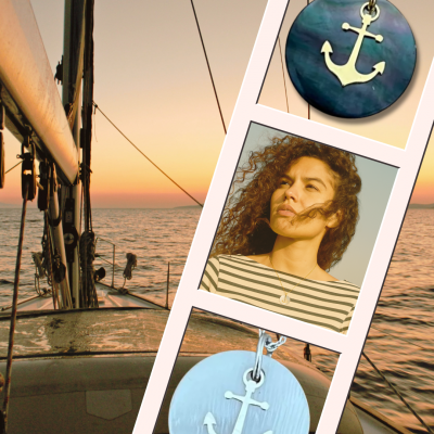 Vous apprécierez la délicatesse de ces Colliers de créateur femme et pendentif en Nacre - Ancre marine, mêlant la nacre naturelle blanche ou noire (dite abalone) avec la lumière de la chaîne et du motif argenté ou doré.