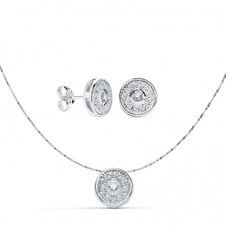 Pureté et éclat se rencontrent dans la parure Élodie, un bijou pensé pour celles qui aiment la sobriété raffinée. Entièrement réalisée en or blanc 18 carats, elle associe un collier délicat et des boucles assorties au design circulaire intemporel.